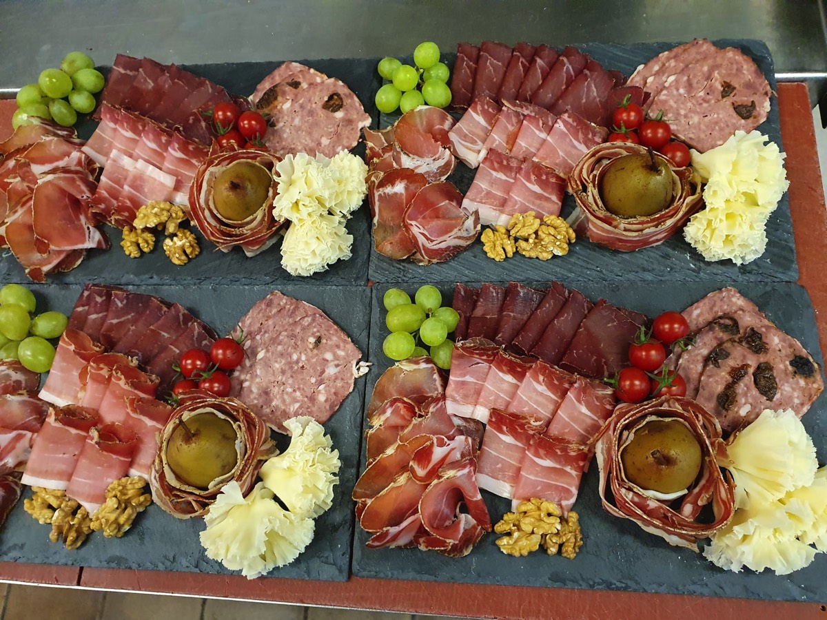 Nous vous proposons des plats froids présentés sur de belles planches en épicéaSur commande au 021 948 74 04